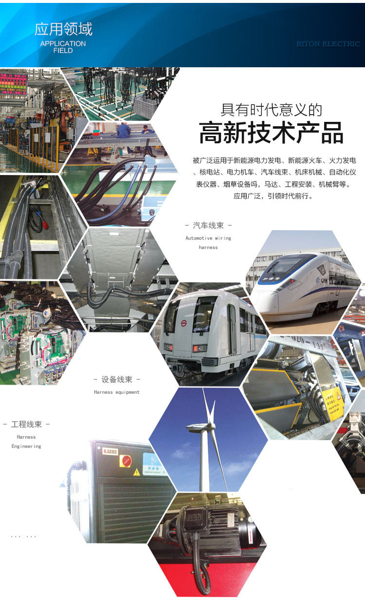 廣泛用于汽車線束,機(jī)床機(jī)械,電力設(shè)備,食品機(jī)械,自動化儀,電機(jī)馬達(dá)等,保護(hù)電纜電線不受外力磨損和絕緣